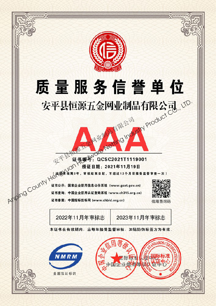多年來,安平縣恒源五金網業制品有限公司堅持“科技興企、質量立業”的經營理念和“誠心為本、客戶至上”的合作宗旨,優(yōu)化生產工藝,打造優(yōu)質產品,提供完善的服務,受到國內外客戶的一致好評,產品行銷全國各地,并出口美國、德國、韓國、日本、臺灣等國家和地區。